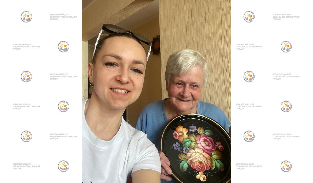 На фото: получательница социальных услуг Центра Резепкина Валентина Федоровна принимает поздравления с 90-летним юбилеем от своего социального работника Жигулиной Евгении Геннадьевны.