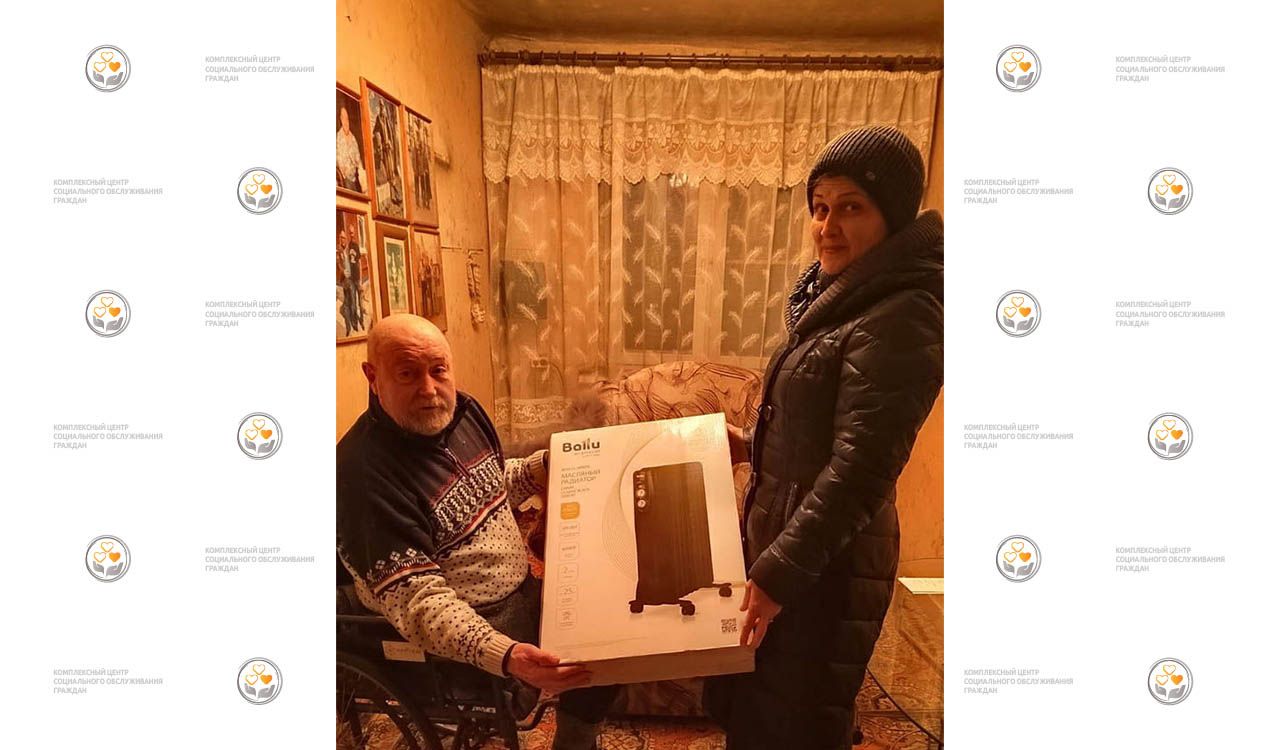 На фото: социальный работник Центра Кульгун Л.В. доставила обогреватель своему подопечному.