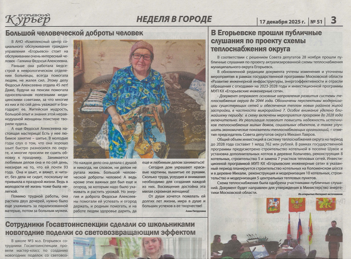 А еще, Федосья Алексеевна настоящая мастерица! Есть у нее любимое занятие – шитье. В молодые годы слух о том, что она хорошо шьет быстро разносился по округе, и многие просили ее сшить обновку к празднику. Занимается любимым делом она и по сей день. Она и шьет, и вяжет, и читает, без дела не сидит, поскольку не привыкла к праздной жизни.
