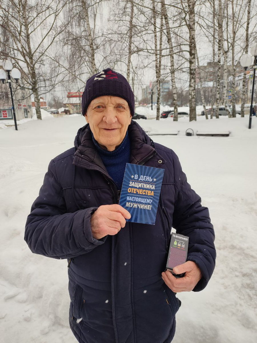 Традиционно 23 февраля в нашей стране поздравляют мужчин с прекрасным и торжественным праздником – Днем защитника Отечества. Наши получатели социальных услуг в юные годы проходили службу в армии, а многие из них продолжили защищать Родину, выбрав почетную и ответственную службу в рядах вооруженных сил. Сейчас в силу возраста и по состоянию здоровья наши получатели социальных услуг не могут быть в строю, но душой каждый рядом с защитниками страны. В этот день наши подопечные принимают поздравления от близких им людей. Социальные работники лично навестили их, чтобы наполнить этот день хорошим настроением и улыбками. Сердечно поздравляем всех мужчин с праздником и желаем крепкого здоровья, бодрости духа и благополучия!
