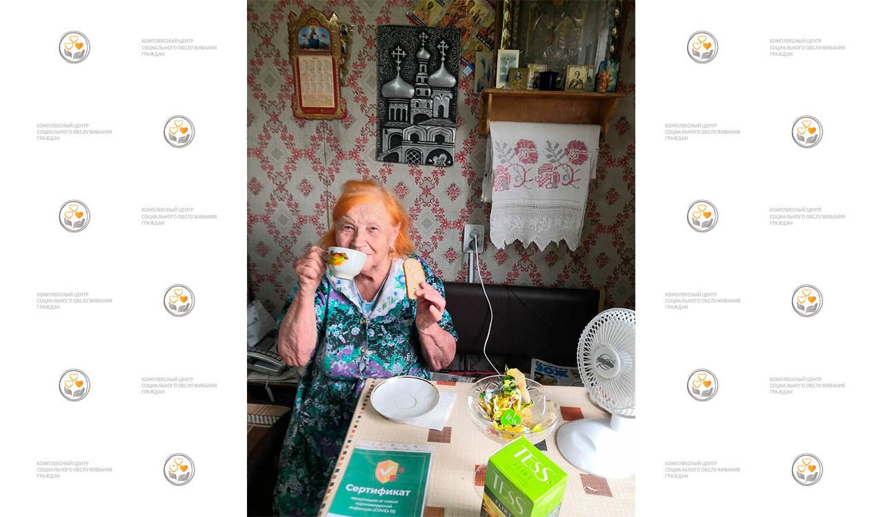 На фото: Нина Павловна отпраздновала получение сертификата о прохождении вакцинации чаепитием.