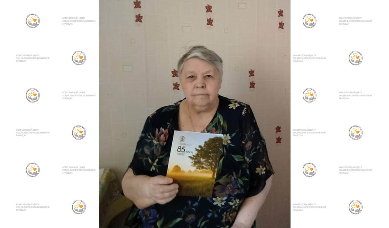 Сейчас в силу возраста она уже не может справляться со многими бытовыми делами и очень рада, что у нее есть прекрасная помощница – социальный работник нашего Центра Дементьева Алсу Саляховна. В праздничный день социальный работник поздравила свою подопечную с юбилеем, передала поздравления и подарки и самые сердечные пожелания.