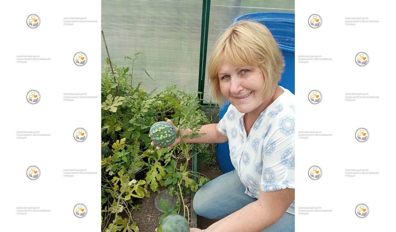 На фото: социальный работник нашего Центра Сидорова Наталья Геннадьевна и плоды, которые она вырастила своими руками.
