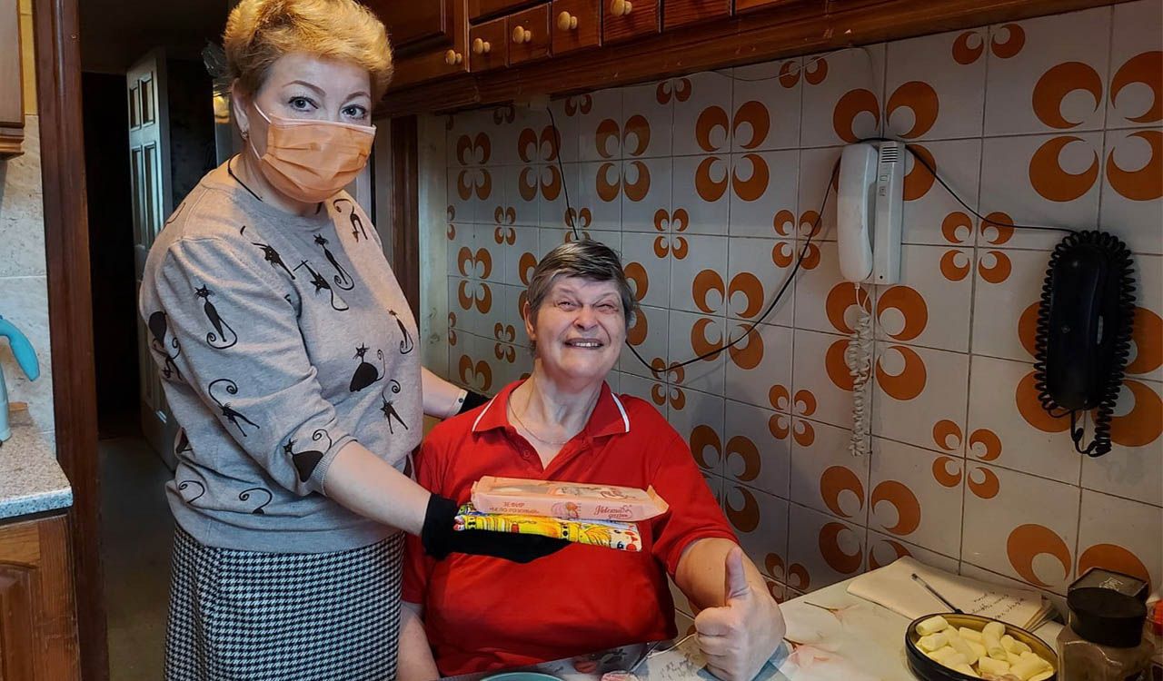 На фото: получатели социальных услуг нашего Центра принимают поздравления с Днем пожилого человека от социальных работников.