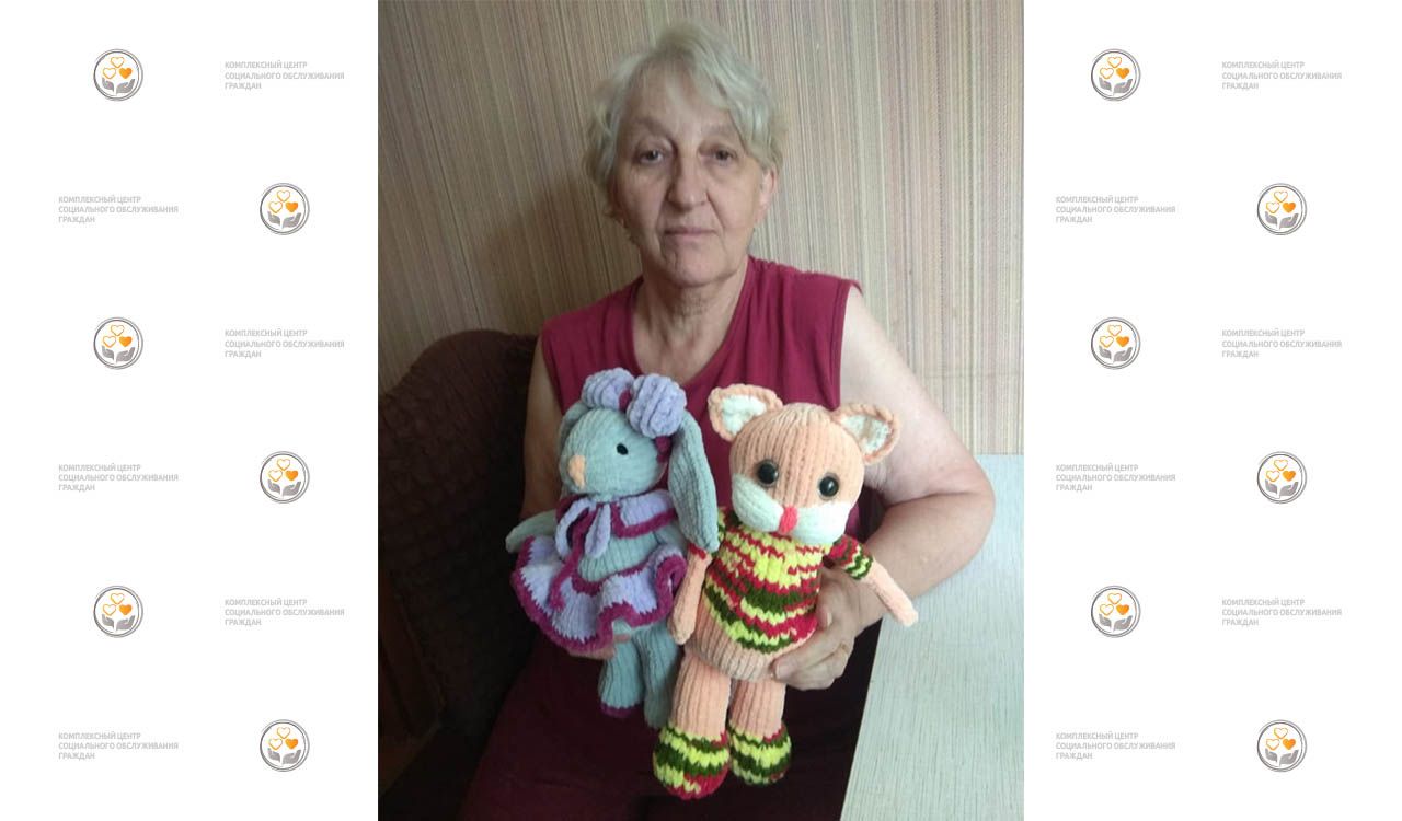 На фото: получательница социальных услуг нашего Центра Баталова Тамара Петровна и куклы, которые она изготовила своими руками.