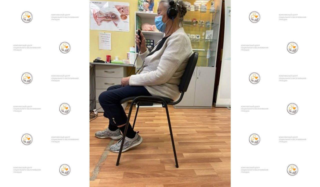 На фото: социальный работник нашего Центра Синдеева Анна Рудольфовна сопровождает получательницу социальных услуг Центра Борисову Любовь Николаевну к специалисту для диагностики и тестирования нового слухового аппарата.