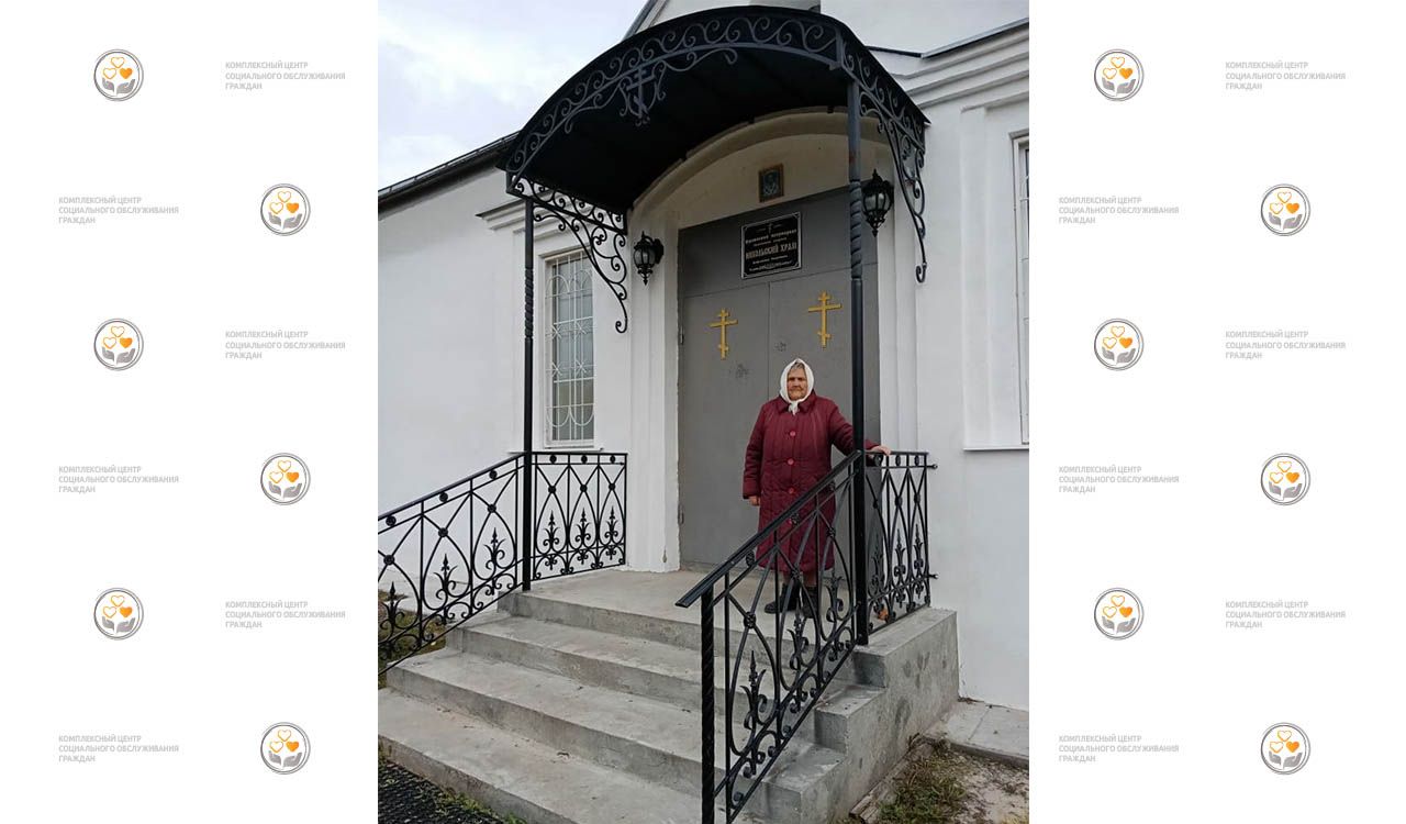 На фото: получательница социальных услуг нашего Центра Хвостанцева Клавдия Ивановна во время посещения храма (фото из личного архива, сделанное до введения антиковидных ограничений).
