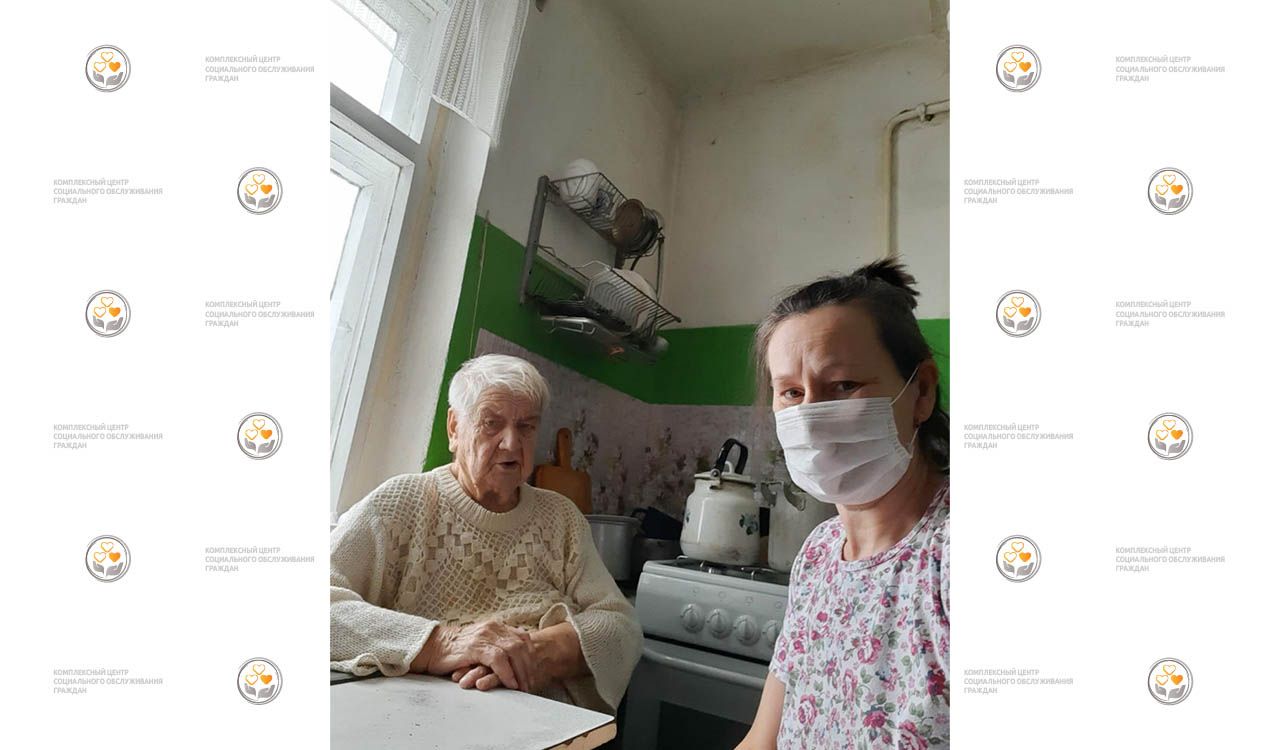 На фото: получательница социальных услуг нашего Центра Альбина Александровна Рыжова и ее социальный работник Надежда Евгеньевна Шутова на фоне новой газовой плиты.