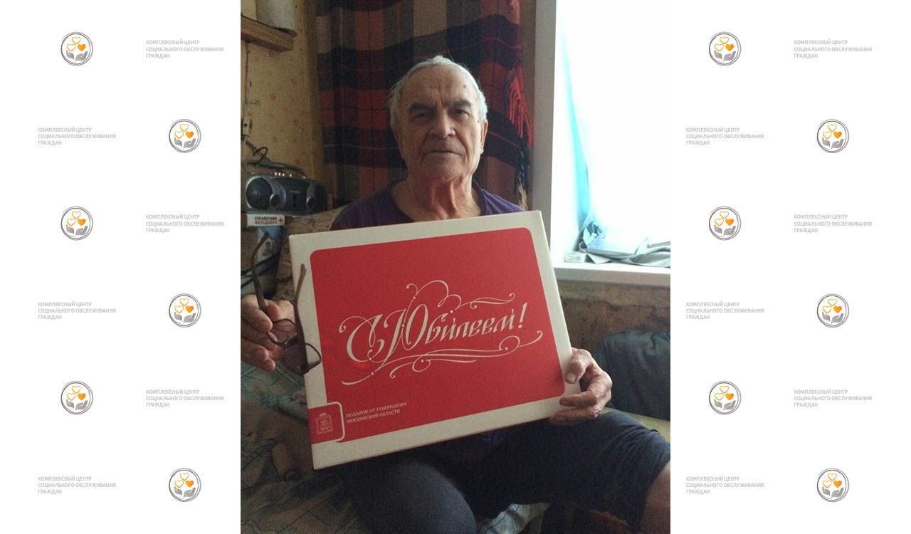 На фото: получатель социальных услуг нашего Центра Михаил Сергеевич Мелехин принимает поздравления с юбилеем.