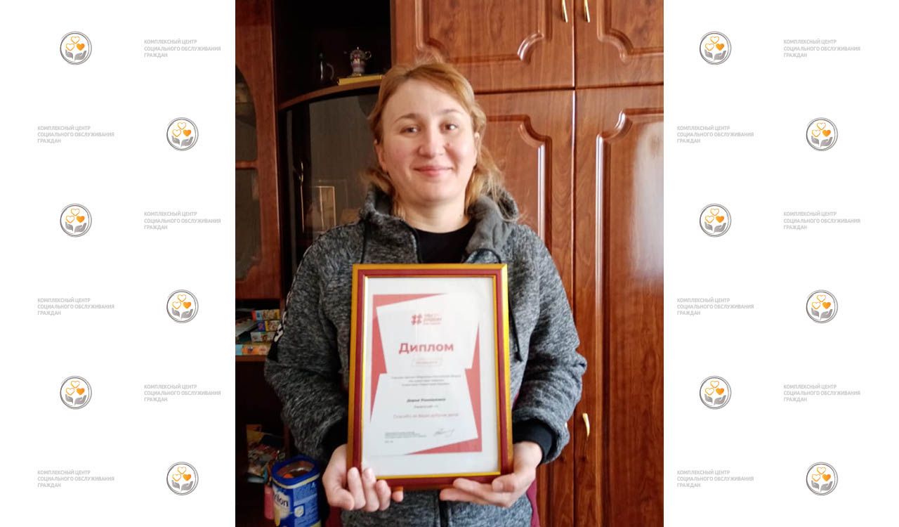 На фото: социальный работник Центра Ромашкина Дарья Сергеевна с дипломом участника программы Премии губернатора Московской области 2021 года «Мы рядом Ради перемен».