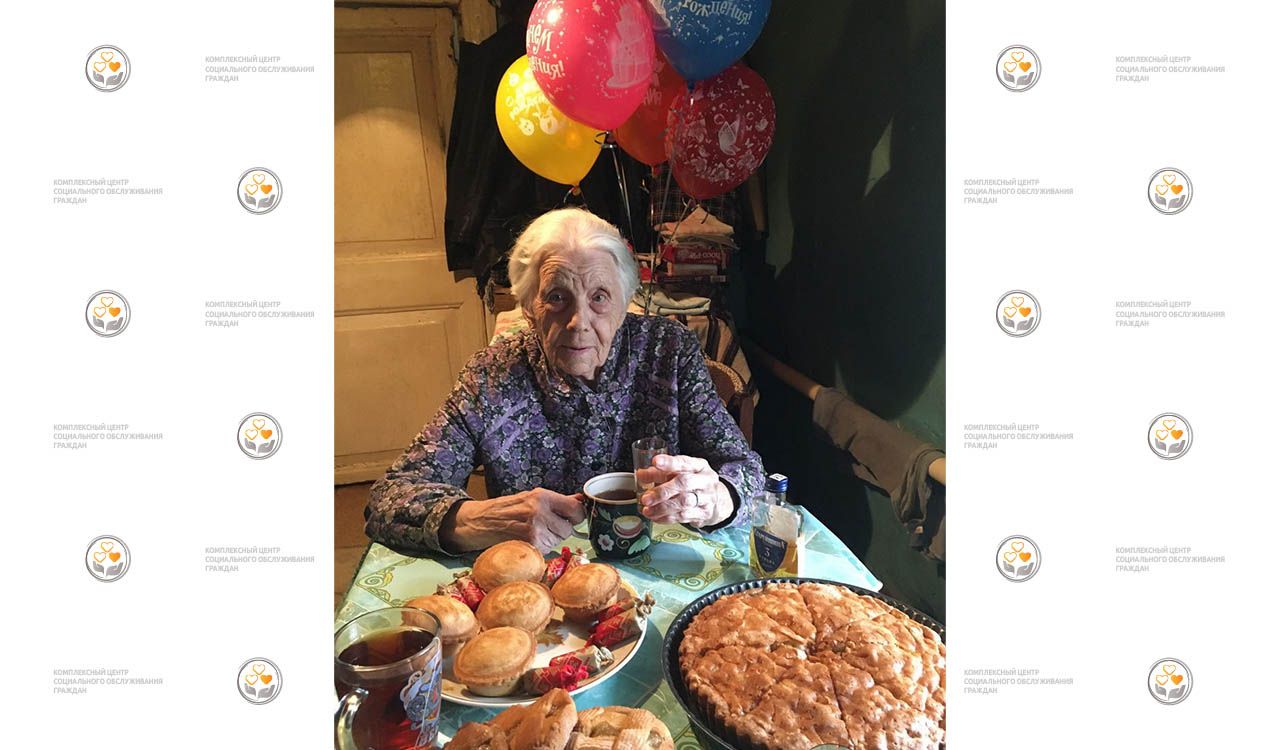 У Марии Васильевны прекрасная семья – дети, внуки, много друзей и близких. Всегда веселая, приветливая, с большим добрым сердцем. На 90-летний юбилей дети и внуки приготовили ей вкусный стол с домашними пирогами, украсили интерьер яркими праздничными шарикам и цветами. Именинница была растрогана и вместе со своим домашним питомцем в отличном настроении принимала поздравления. Одной из первых ее поздравила социальный работник Центра Кадочникова Елена Владимировна, она вручила Марии Васильевне подарки и озвучила самые сердечные пожелания от всего нашего дружного коллектива.