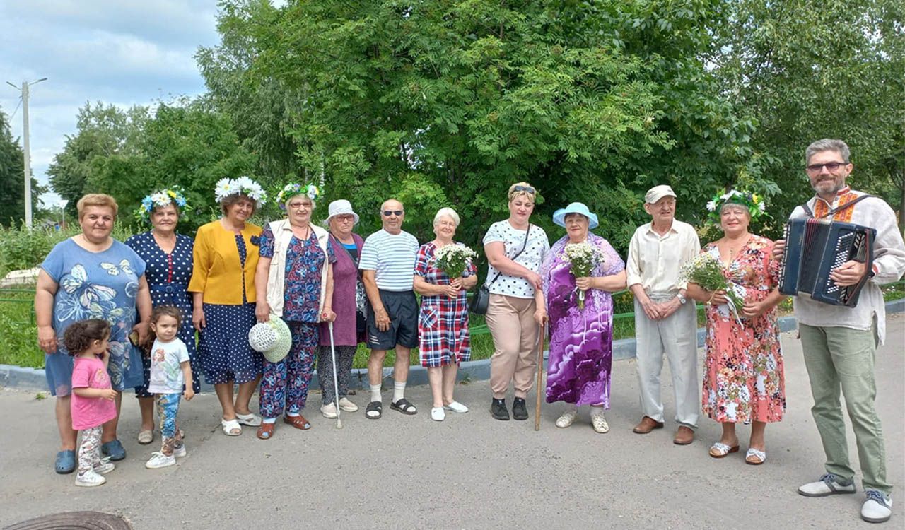 В День семьи, любви и верности для прекрасного и позитивного настроения социальный работник Центра Чашина Наталья Сергеевна сопроводила своих получателей - семью Пьянковых на мероприятие, которое организовал местный Дом Культуры. Супруги в браке более 55 лет и до сих пор они сохранили нежные чувства по отношению к друг другу. Так приятно, что есть такие семейные пары, подающие окружающим пример взаимоуважения, преданности и взаимной заботы. Семья у них творческая: ранее Леонид Иванович и Валентина Ивановна пели в хоре, участвовали в самодеятельности, а Леонид Иванович еще и играл на гармошке. Вот и в праздничный день без песен не обошлось!
