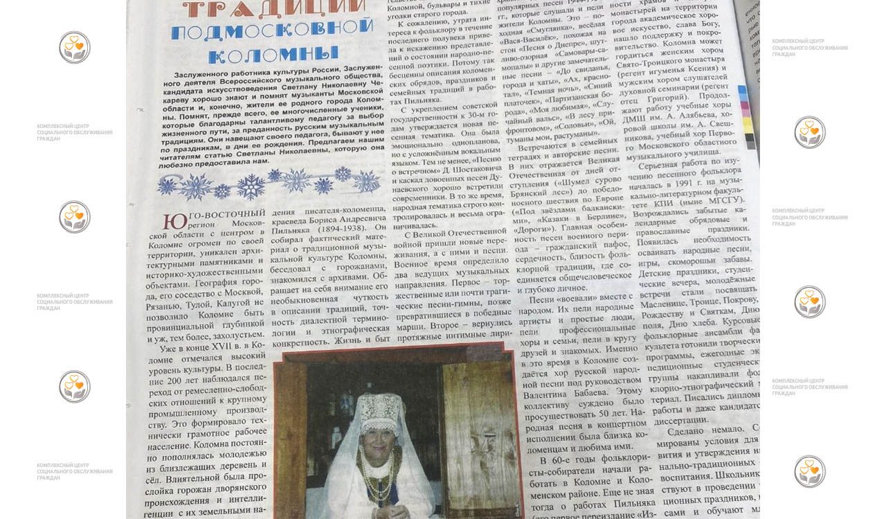 На фото: публикация в СМИ, посвященная яркому творческому и трудовому пути получательницы социальных услуг Центра Чекаревой Светланы Николаевны.