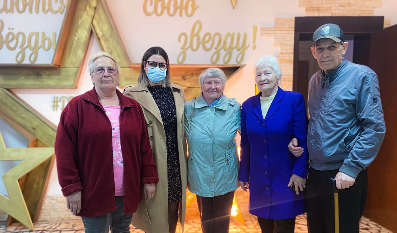 На фото: социальный работник Центра Алина Александровна Клейменова сопровождает своих получателей социальных услуг на концерт, посвященный юбилею Дома культуры «Северянка».