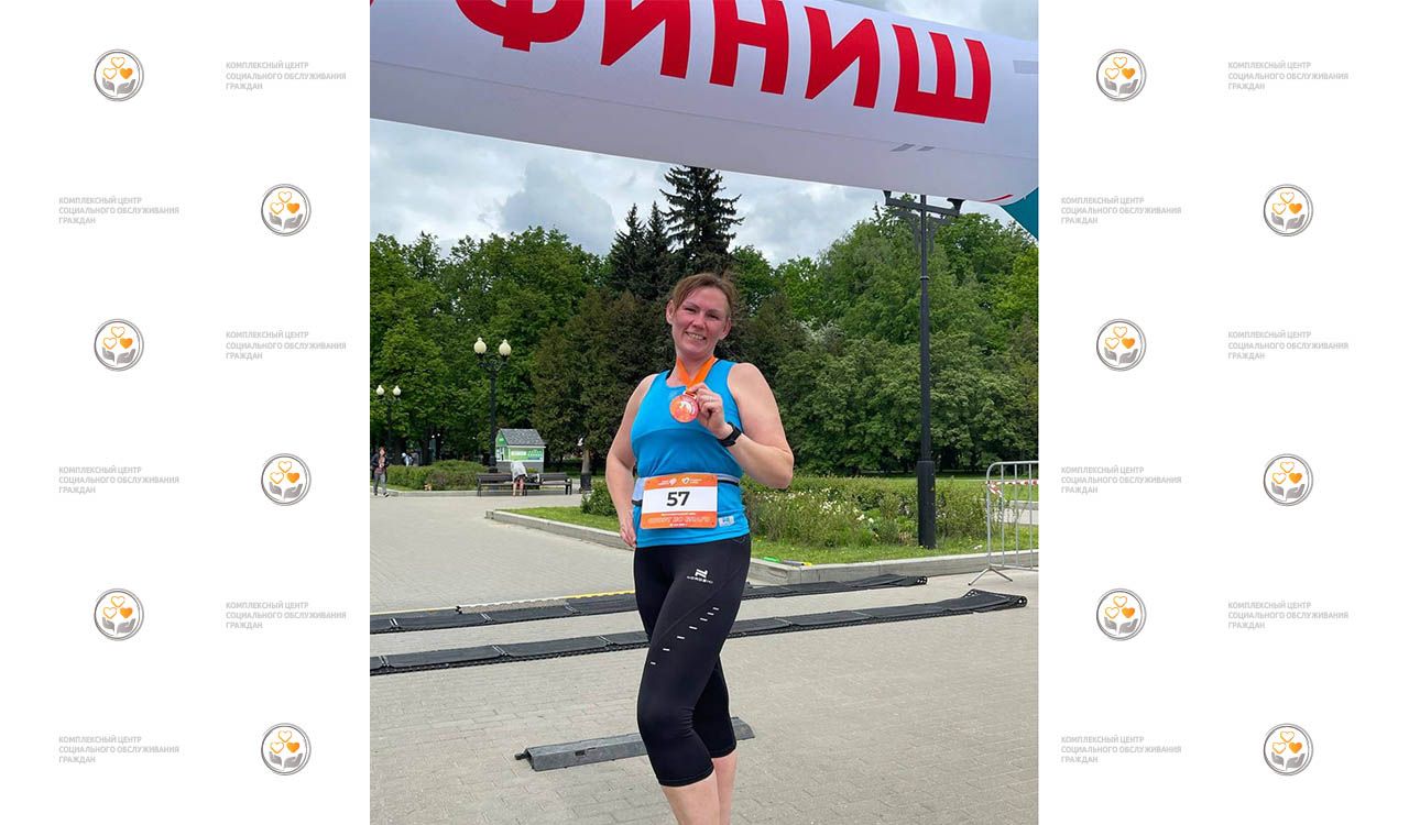 На фото: социальный работник Центра Гаврилова Любовь Владимировна принимает участие в благотворительном забеге «Спорт во благо».