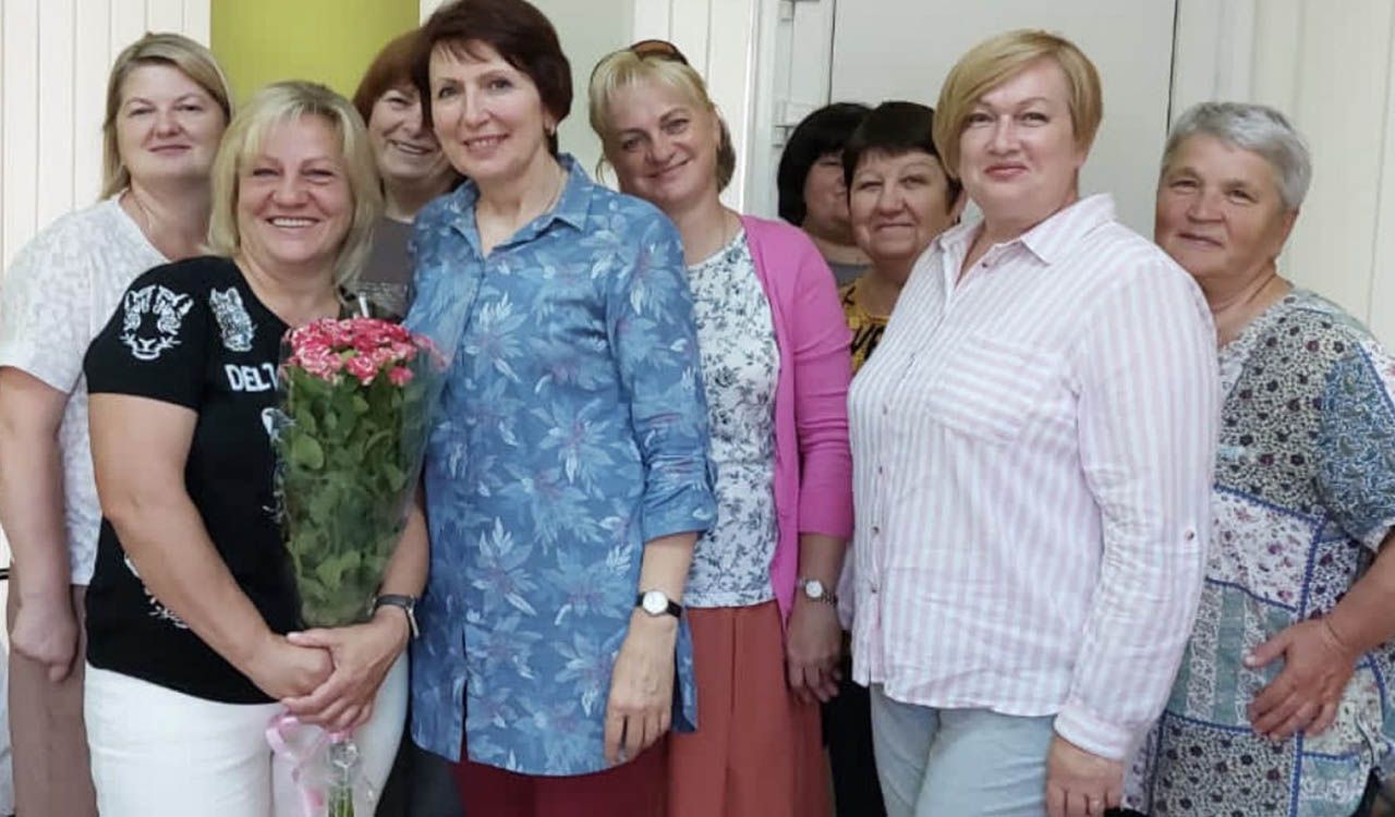 На фото: социальный работник Центра Мазова Екатерина Николаевна принимает поздравления с юбилеем.