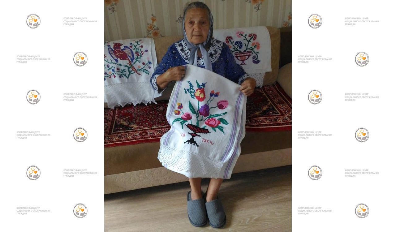 Традиционные рушники с плетеным ручным кружевом и уникальными орнаментами не могут не вызвать восхищения трудолюбием и талантом получательницы социальных услуг нашего Центра Гутовой Александры Михайловны. В свои 96 лет наша подопечная полна желания творить. К сожалению, с годами стало подводить зрение, начались проблемы со здоровьем, но простую вышивку осилить еще может и часто берет в руки иголку, цветные нитки и посвящает свободное время своему любимому делу.