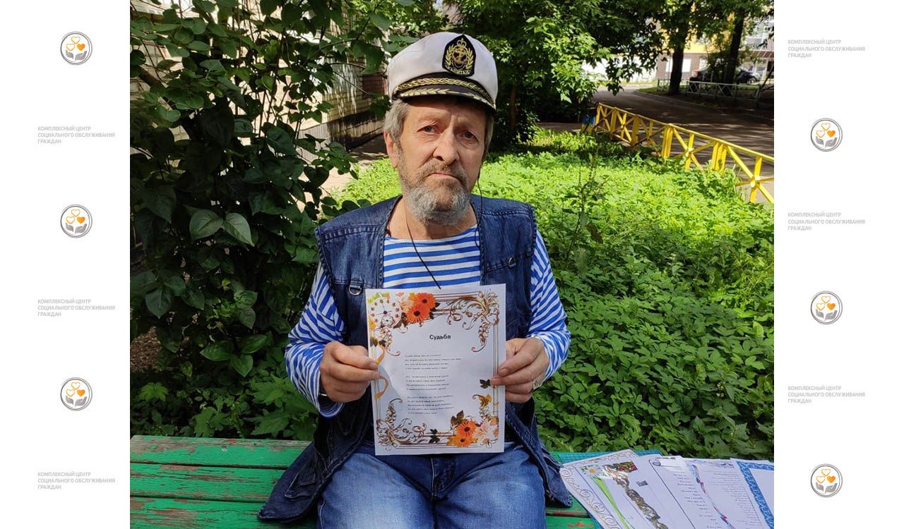 На фото: получатель социальных услуг Центра Симонов Александр Ильич и его любимое стихотворение, которое называется «Судьба».