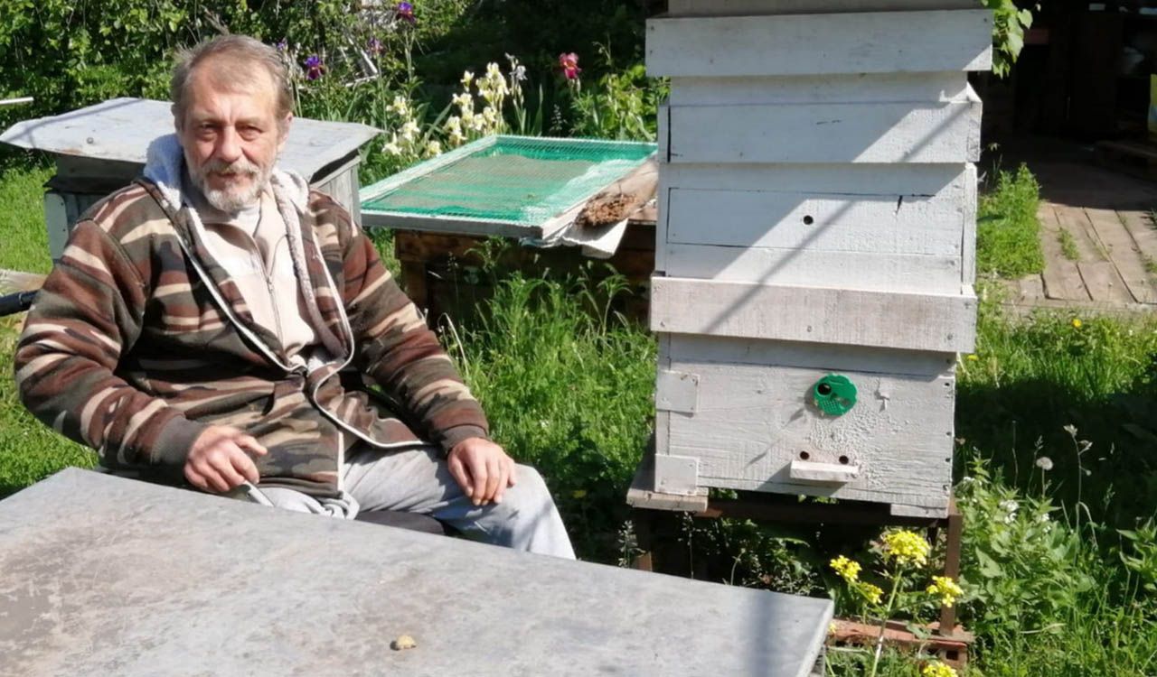 На фото: получатель социальных услуг Центра Золин Андрей Юрьевич на своей пасеке.