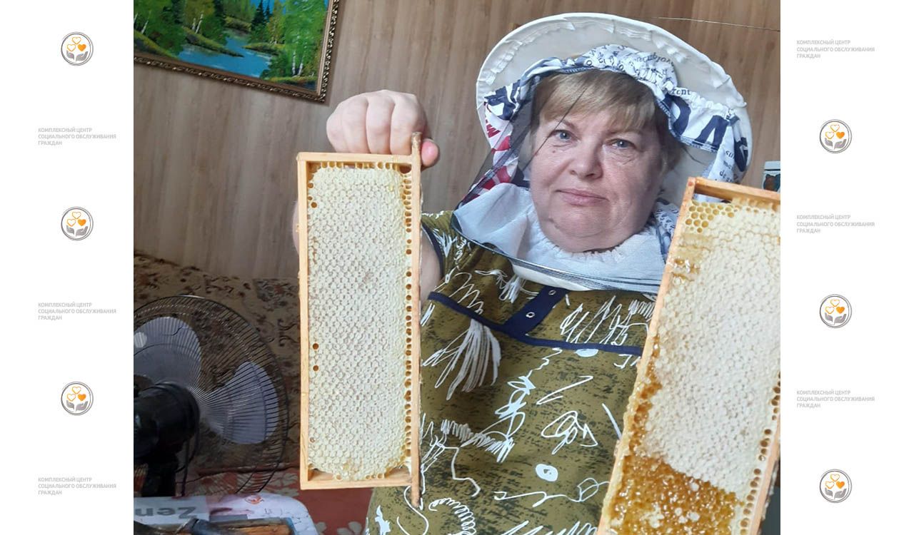 На фото: социальный работник Центра Козлова Галина Александровна и соты с медом с ее собственной пасеки.
