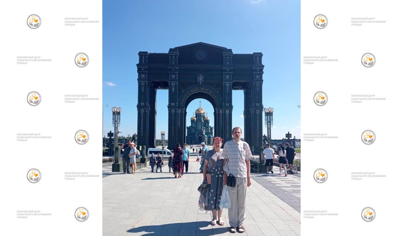 На фото: получатели социальных услуг Центра Мария Михайловна Потапова и ее сын, инвалид с детства Андрей Николаевич Потапов во время посещения экскурсии в Военно-патриотическом парке культуры и отдыха Вооруженных Сил РФ «Патриот».
