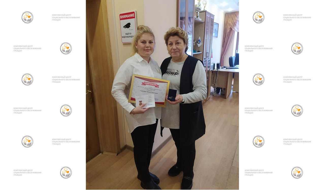 На фото: социальный работник Центра Харисова Лейсен Резитовна и ее почетная награда.