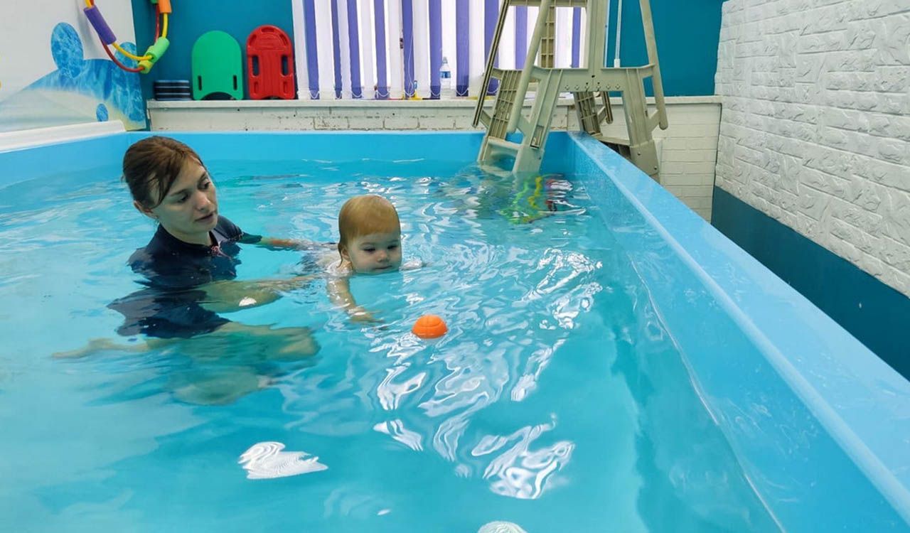 На фото: социальный работник Центра Коровкина Ольга Петровна со своей внучкой Полиной в бассейне.