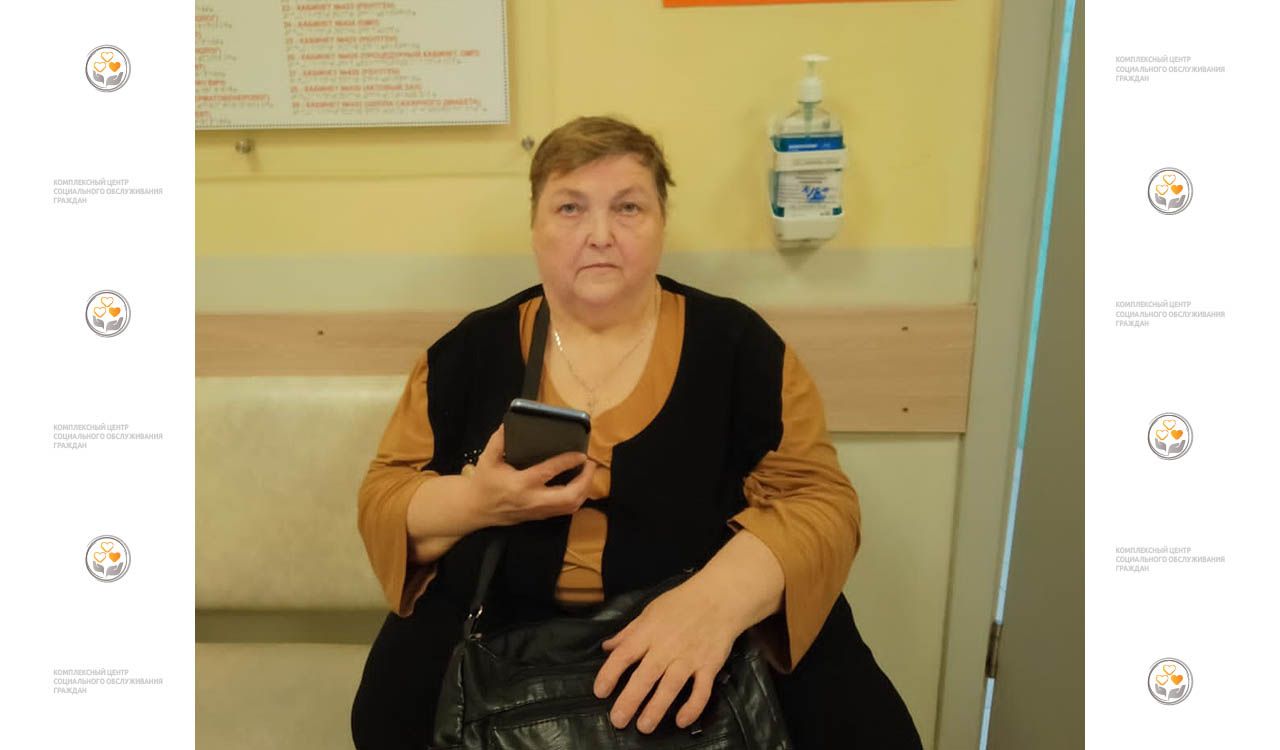На фото: получательница социальных услуг Центра Брюшинина Татьяна Васильевна ожидает врачебного приема.