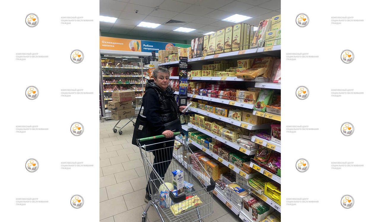 На фото: социальный работник Центра выбирает сладости для праздничного первомайского чаепития.
