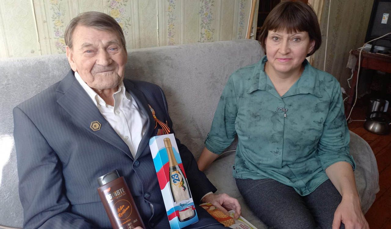 На фото: получатели социальных услуг Центра принимают поздравления с Днем защитника Отечества.