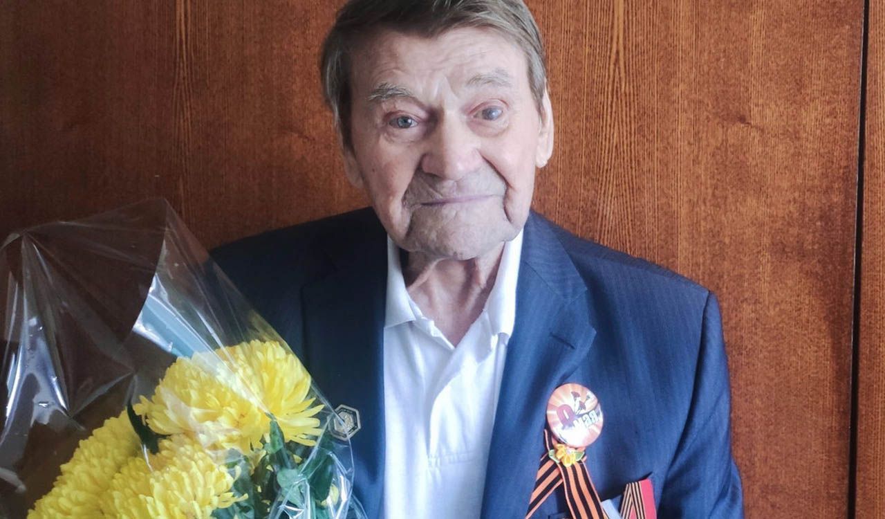 На фото: получатель социальных услуг Центра Новиков Василий Иванович принимает поздравления с 95-летним юбилеем.