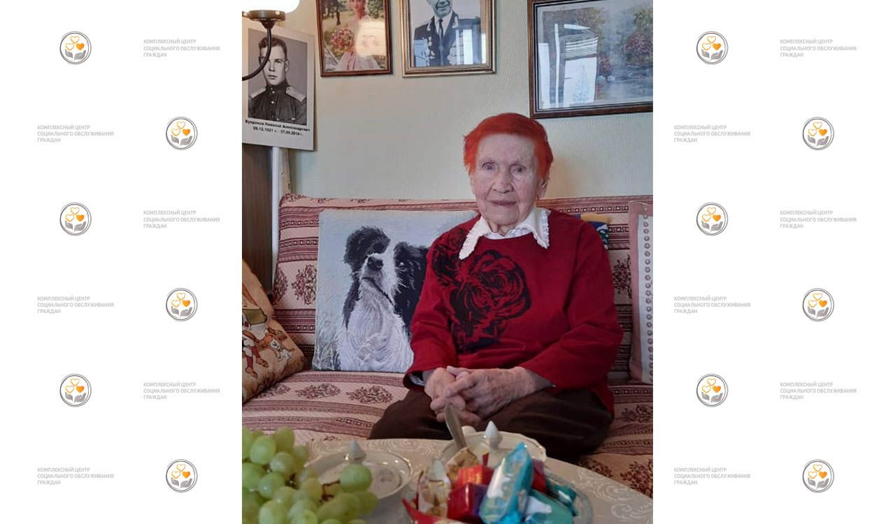 На фото: получательница социальных услуг Центра Купранова Зоя Александровна принимает поздравления со 100-летним юбилеем.