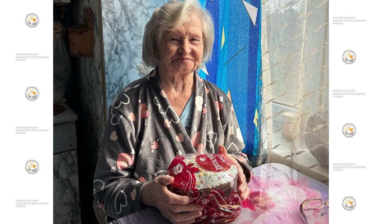 На фото: сотрудники Центра доставили получателям социальных услуг Центра свежие и вкусные пасхальные куличи.