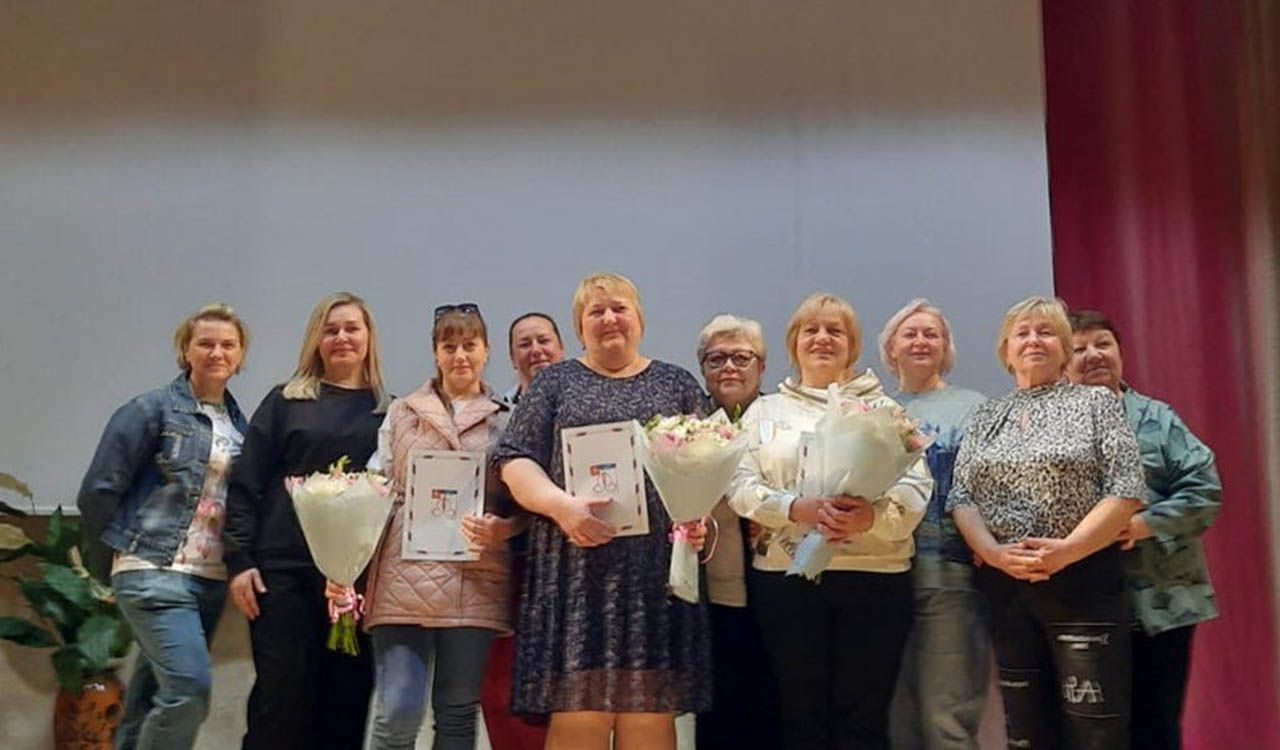 На фото сотрудники Центра Хинкевич Наталья Сергеевна, Мазова Екатерина Николаевна и Федорова Кристина Андреевна вместе с другими участниками празднования.