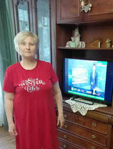 На фото: получательница социальных услуг Центра Симонова Ольга Александровна и ее новый телевизор.