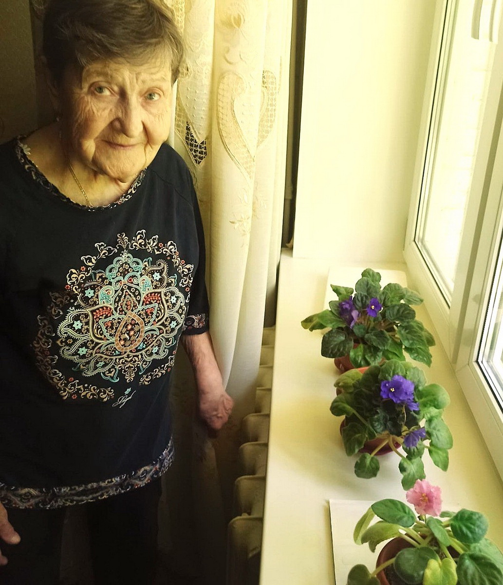 На фото: получательница социальных услуг Центра Мария Артемьевна Зверева и комнатные растения, которые она вырастила своими руками.
