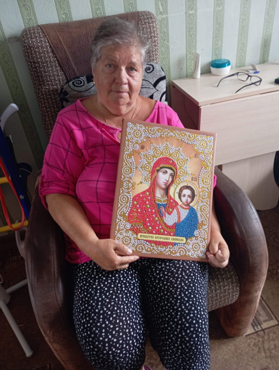Получательница социальных услуг нашего Центра Смирнова Нина Олеговна не так давно перенесла очень сложное заболевание, в результате которого частично утратила двигательную активность. Несмотря на полученную инвалидность, она не падает духом и находит радость в ежедневных занятиях рукоделием. Особенно любит Нина Олеговна собирать картины из бисера. Не спеша она создает свои работы, тренирует моторику, концентрирует внимание и улучшает свое состояние. Все картины на православные темы, их Нина Олеговна дарит своим подругам и близким к различным праздникам.