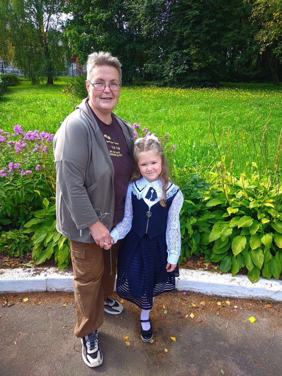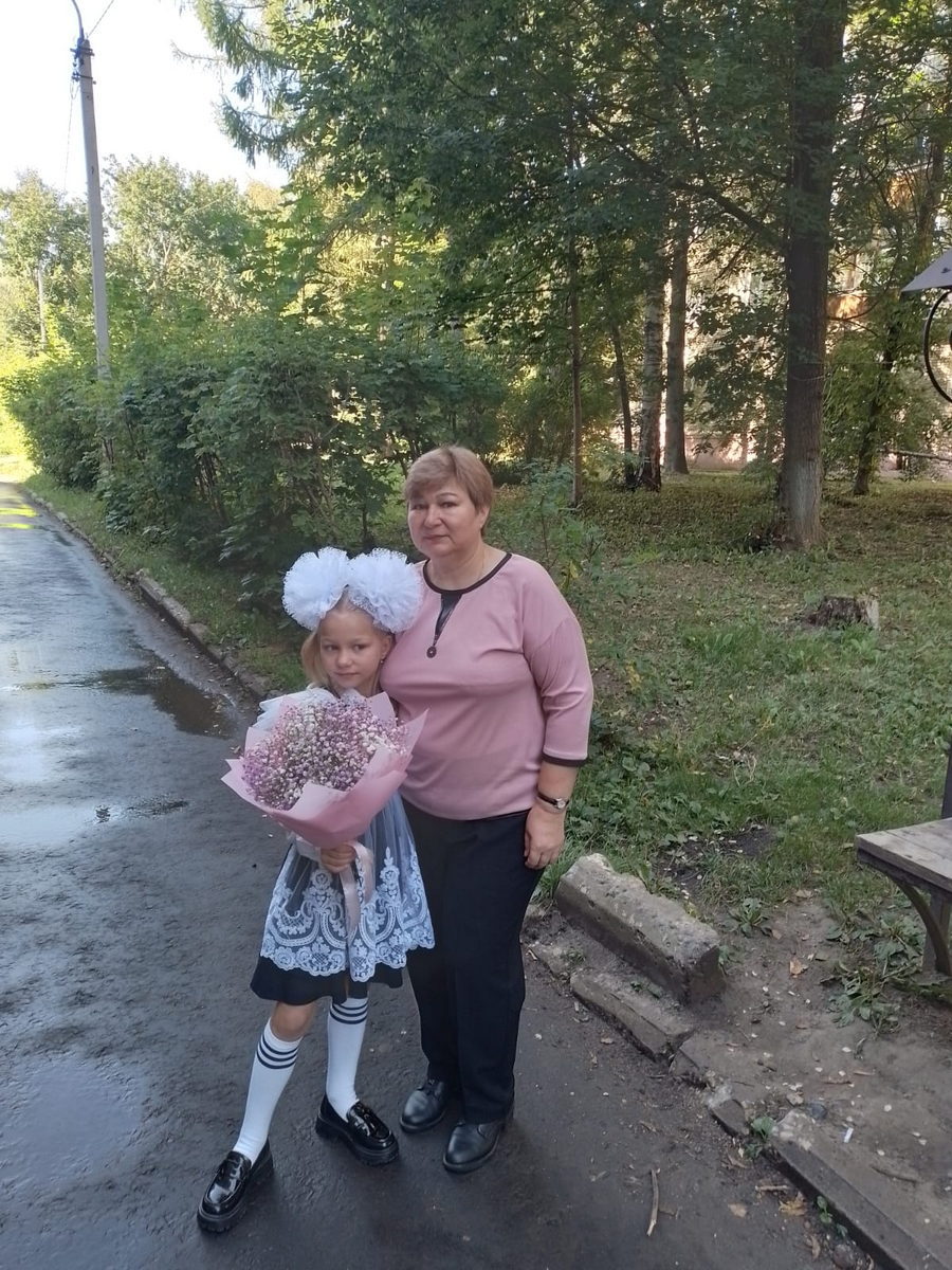 На фото: социальные работники Гусева Галина Викторовна и Попкова Любовь Борисовна провожают своих внучек в первый класс.