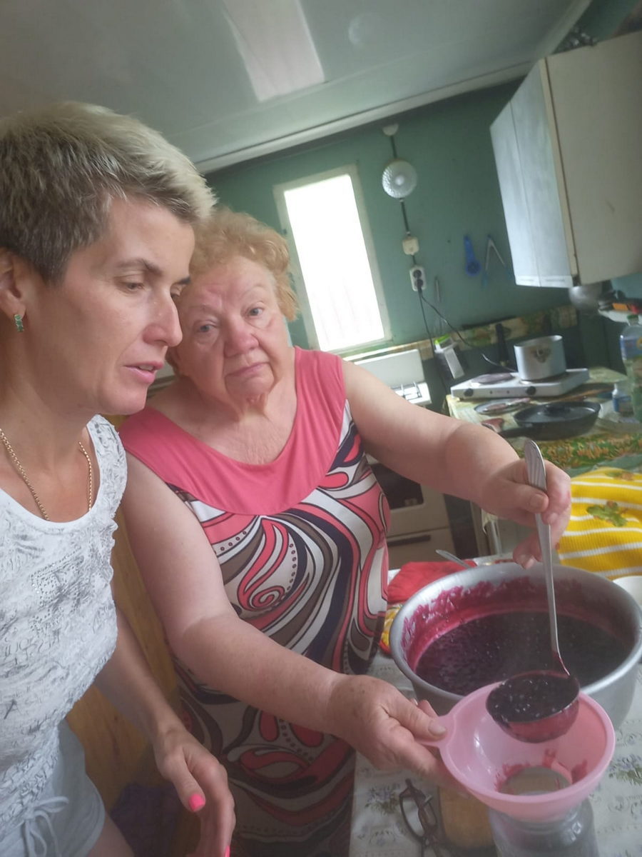 На фото: получатели социальных услуг Центра вместе с социальными работниками Центра делают заготовки на зиму.