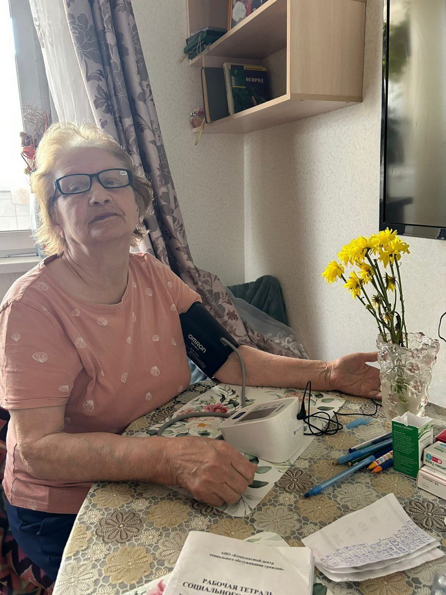 В нашем Центре есть такая очень важная и востребованная услуга, как «Выполнение процедур, связанных с сохранением здоровья получателей социальных услуг», в рамках которой социальные работники проводят не только измерение температуры тела и контроль за приемом лекарств, но и измеряют артериальное давление. В пожилом возрасте это особенно важно. Повышенное давление (гипертония) и пониженное давление (гипотензия) чаще встречаются у пожилых людей и могут приводить к серьезным осложнениям: инсультам, сердечным приступам, сердечной недостаточности и нарушению памяти. Регулярный контроль артериального давления помогает вовремя заметить изменения, скорректировать образ жизни и препараты, что снижает риск осложнений.