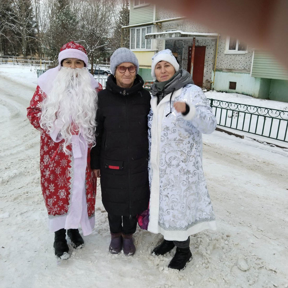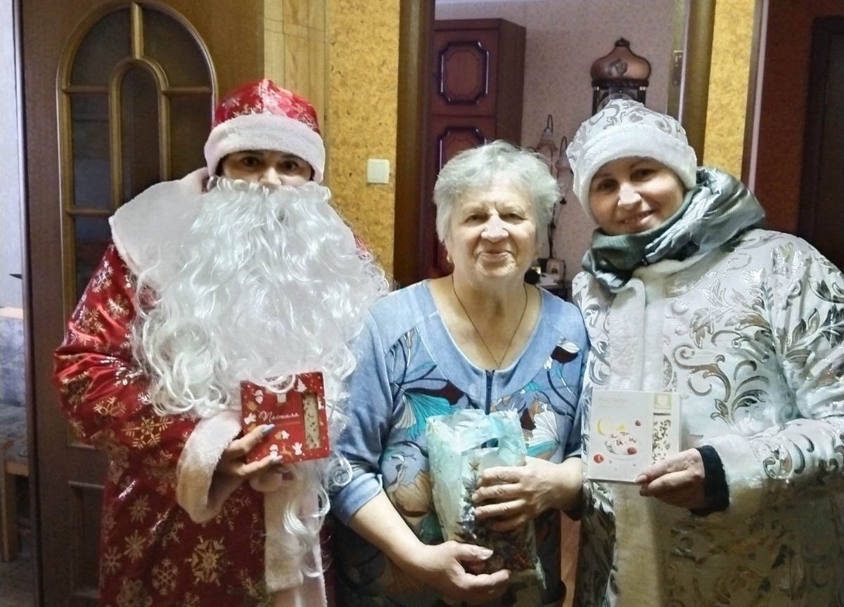 Накануне празднования Рождества социальные работники Центра в костюмах Деда Мороза и Снегурочки навестили наших получателей социальных услуг и принесли с собой приятные подарки, отличное праздничное настроение и очень много радости. Праздничные новогодние наряды сразу же принесли улыбки на лица, вызывая искренний отклик. Поздравления и добрые шутки добавляли атмосфере веселья и радости.