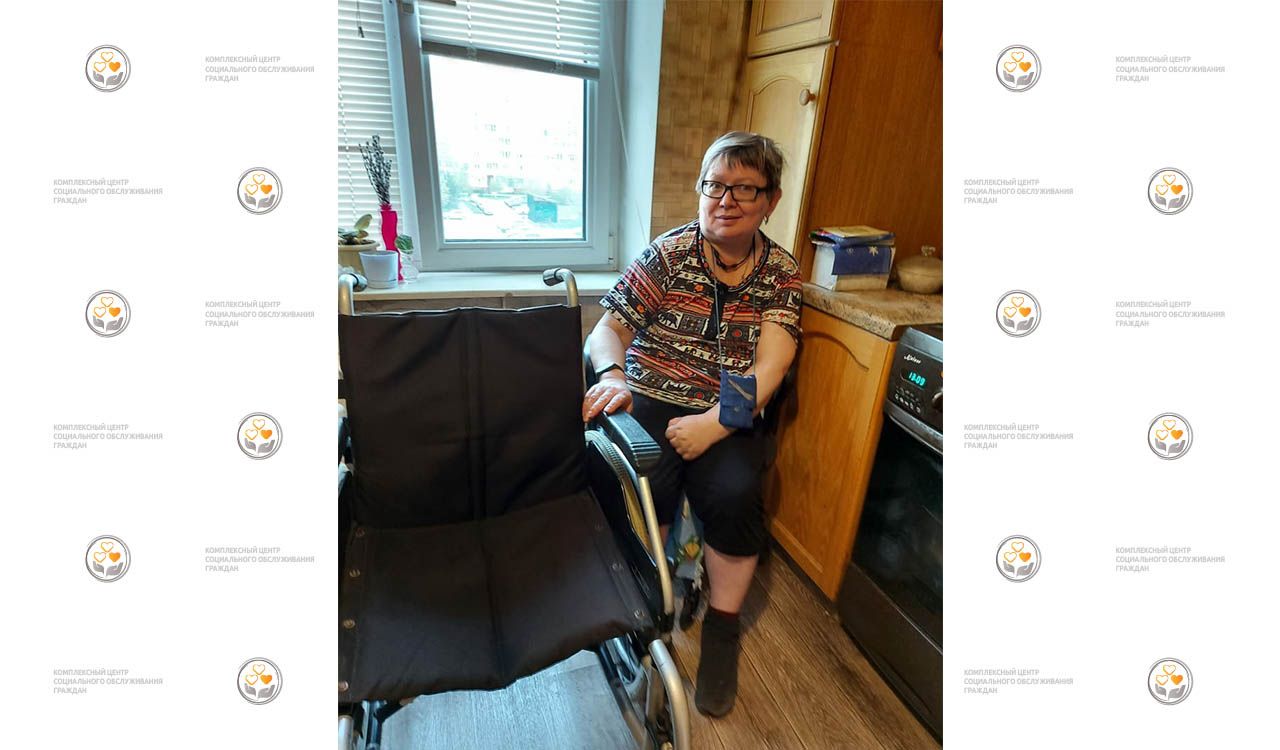 На фото: получательница социальных услуг нашего Центра Дзядух Наталья Викторовна и инвалидная коляска, которая была передана в дар по просьбе нашей подопечной.
