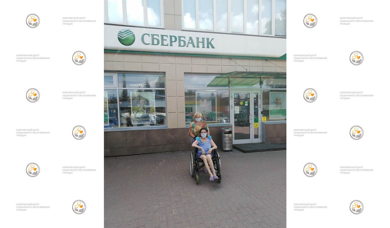 На фото: социальный работник нашего Центра Малютина Ольга Васильевна сопроводила свою получательницу социальных услуг Алешину Татьяну Викторовну в банк.