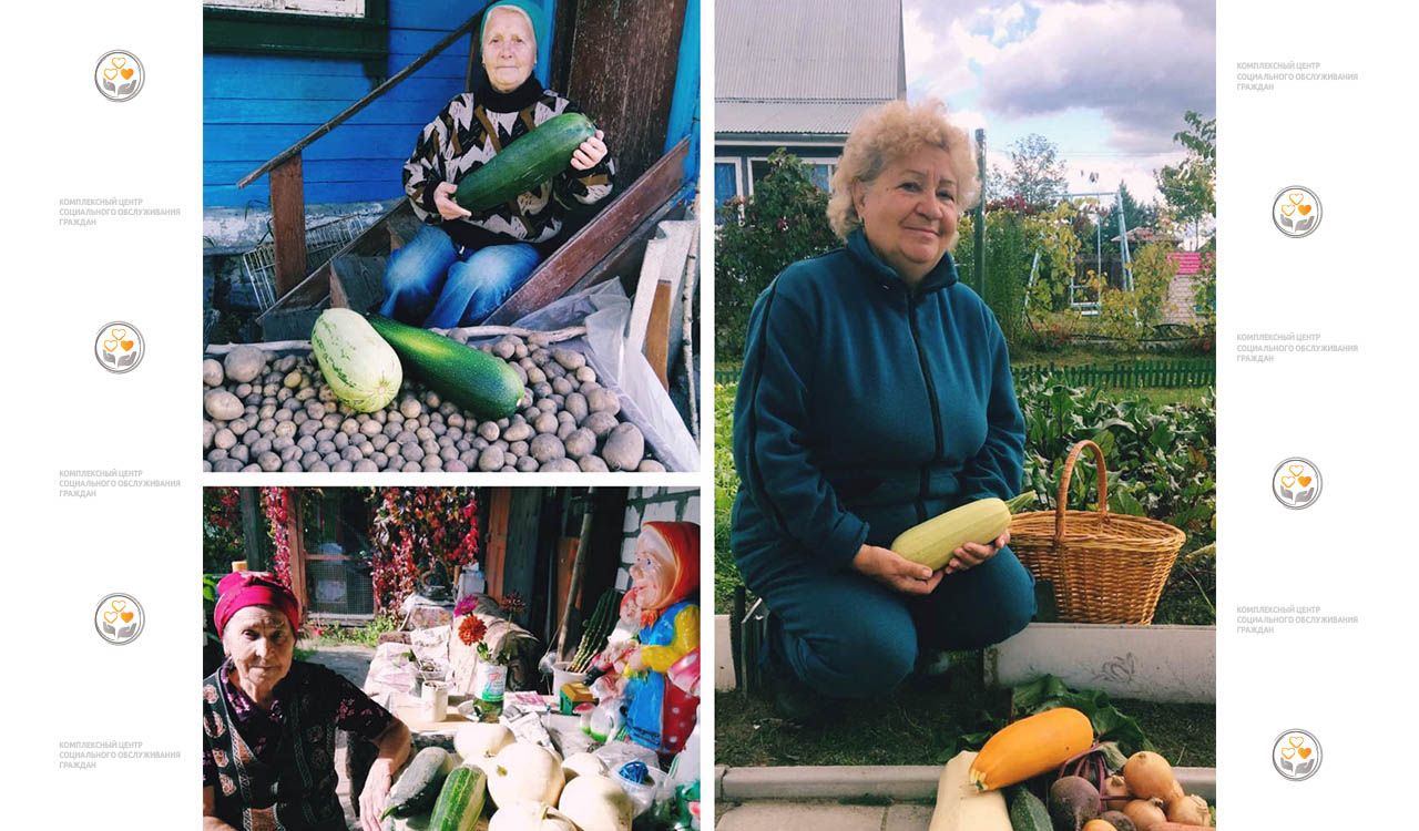 На фото: получатели социальных услуг нашего Центра с урожаем, который они вырастили на своих приусадебных участках.