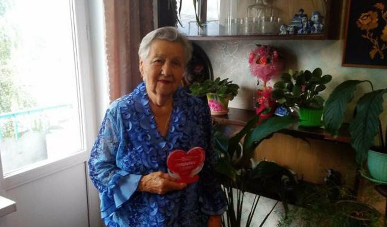 На фото: получательница социальных услуг нашего Центра Казанова Альбина Марковна с профессиональной наградой «Открытое сердце» (фото из семейного архива).