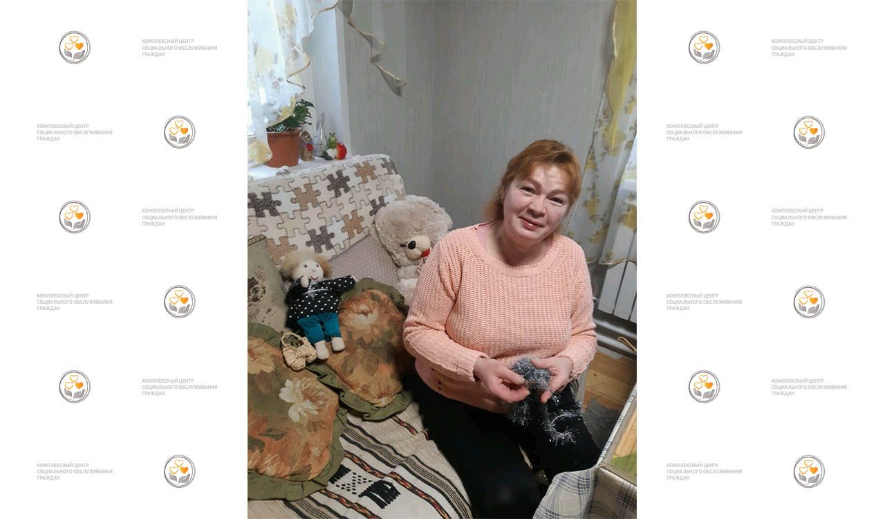 На фото: получательница социальных услуг нашего Центра Иконникова Ирина Валерьевна и куклы, которые она создала своими руками.