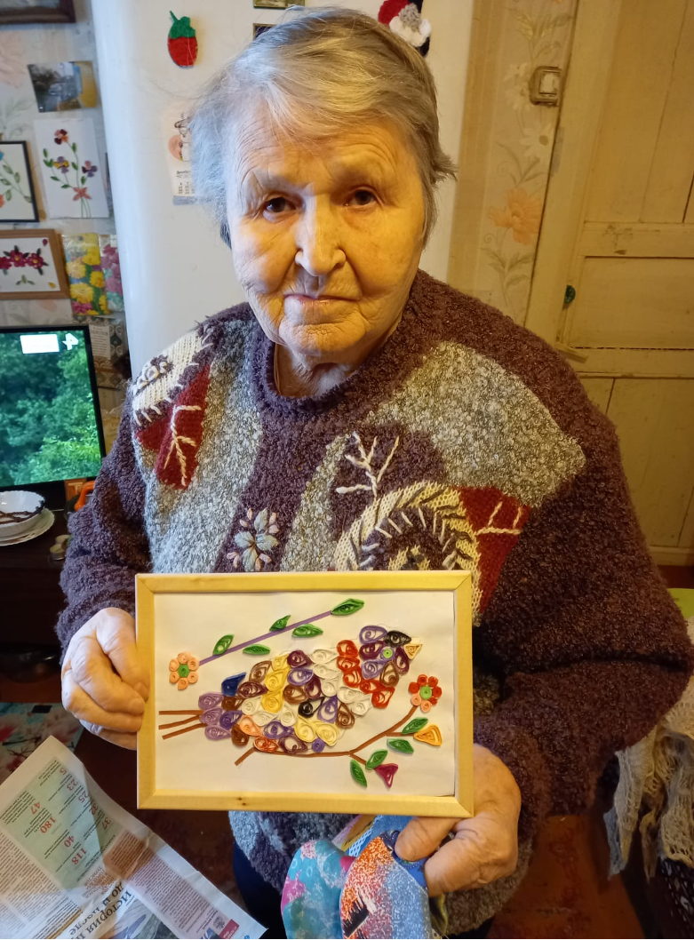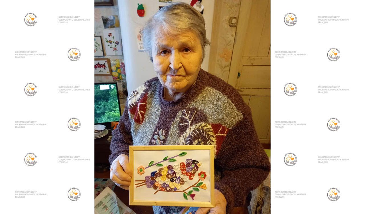 Получатели социальных услуг нашего Центра не скучали на каникулах, каждый нашел для себя какое-то увлекательное и полезное занятие. Вот и наша подопечная Шевшунова Александра Александровна в свои 82 года ведет активный образ жизни. Одним из ее творческих увлечений является создание работ в технике квилинг. Этот вид рукоделия еще называют «бумагокручением». Техника требует аккуратности и сосредоточенности – на специальный инструмент накручиваются тонкие полоски бумаги, из них формируется модули, из которых мастерица и составляет рисунок. Дом Александры Александровны украшен ее работами, она очень любит проводить время за рукоделием. А в праздничные дни наша получательница социальных услуг создала работу в подарок своему социальному работнику Центра Соболевой Валентине Николаевне.