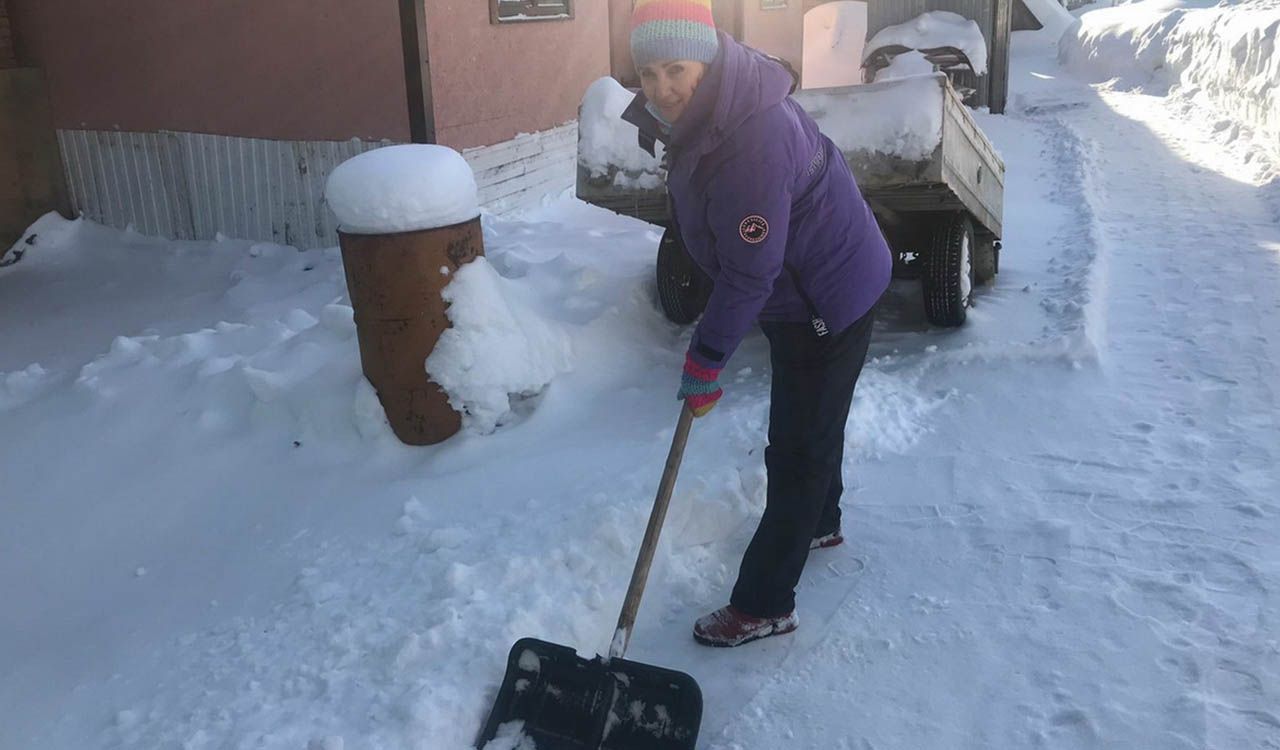 Вот и социальный работник Соловьева Лариса Борисовна помогает своей подопечной Артамоновой Юлии Владимировне справляться со снежными заносами в ее дворе. В этом году зима особенно снежная. Социальным работникам Центра приходится регулярно брать в руки лопату и расчищать крыльцо, дорожки, придомовую территорию, чтобы наши получатели социальных услуг смогли комфортно выходить на улицу, наслаждаться зимней красотой и свежим воздухом.