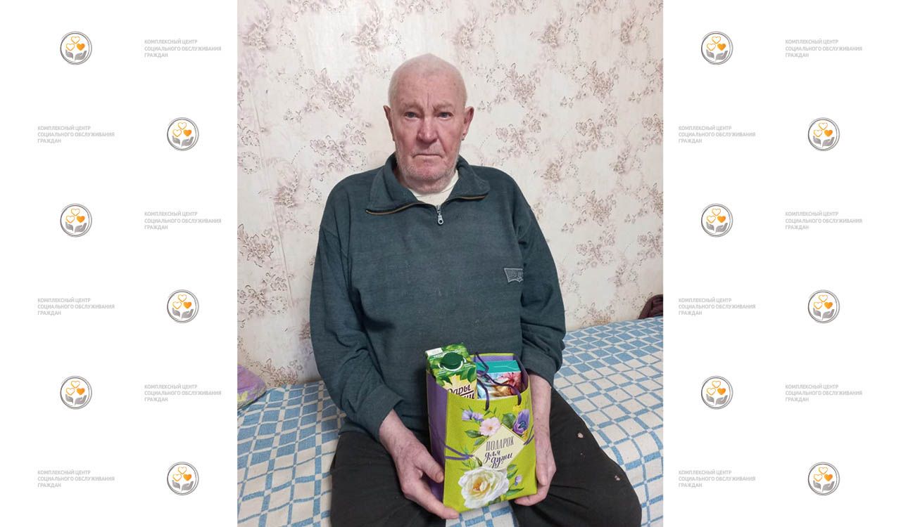 Аркадий Алексеевич Нечаев не так давно отметил 84 года. Праздник прошел в уютной домашней атмосфере, без гостей и торжеств. Наши получатели социальных услуг очень ответственно относятся к рекомендациям медиков и соблюдают режим самоизоляции. Праздники откладывают на потом, когда ситуация с заболеваемостью нормализуется и можно будет свободно общаться с друзьями, соседями и близкими. И, тем не менее – какой же праздник без поздравлений! Пожелания от коллектива нашего Центра и приятные подарки Аркадию Алексеевичу передала социальный работник Центра Харисова Флюра Мансуровна. Еще раз хотим пожелать нашему подопечному – как можно больше улыбок, счастья, здоровья и дальнейшего долголетия!