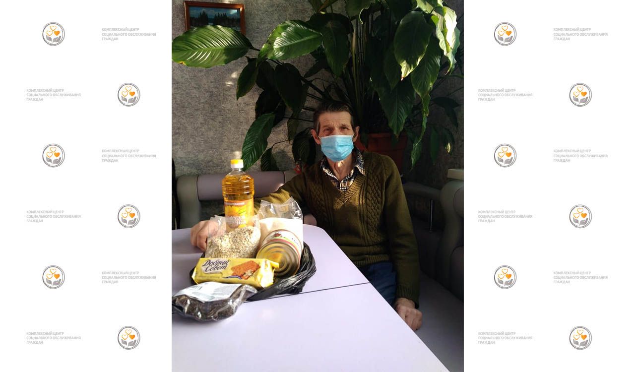 На фото: получатели социальных услуг нашего Центра с продуктовыми наборами.